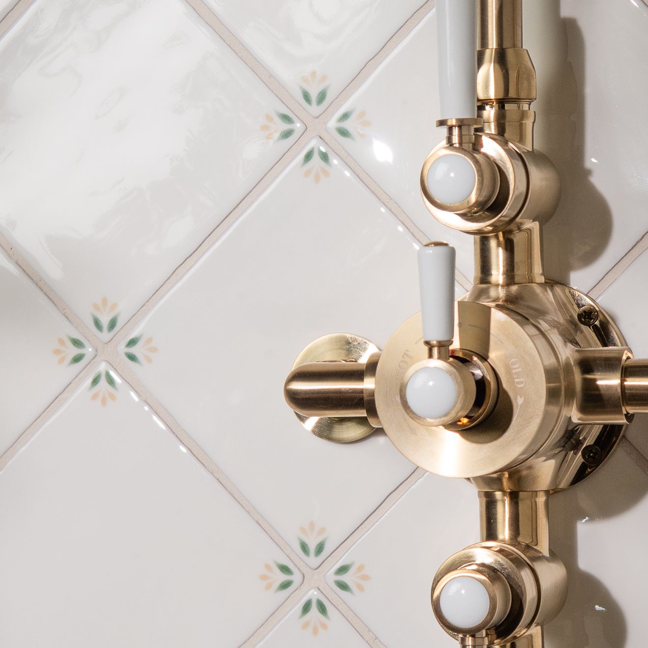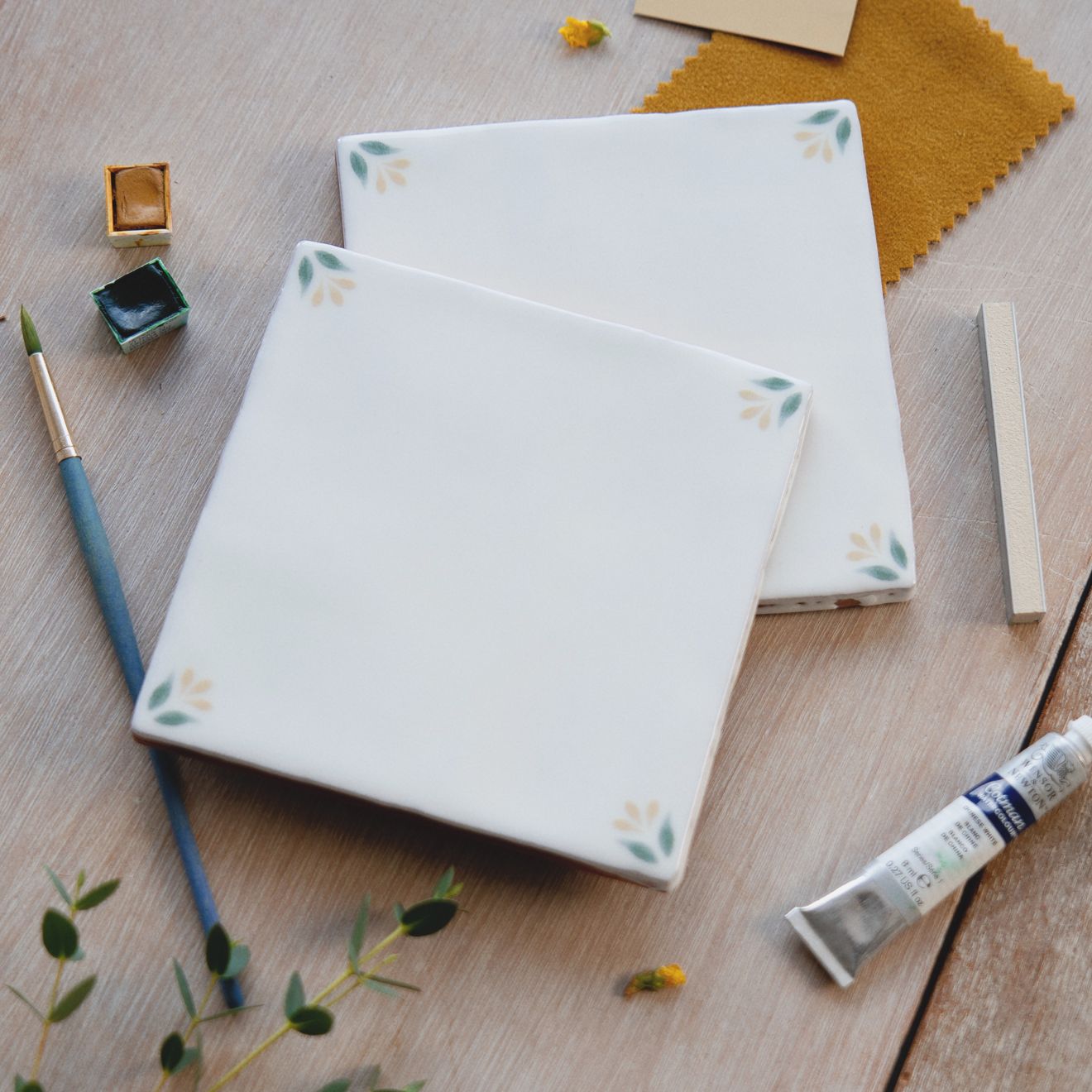 Spring April Primrose is a pretty corner decor with a soft yellow flower that accompanies our Spring flower decor tiles. They can also be on their own for an understated floral backdrop in any interior.